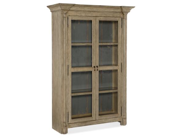The striking silhouette of the two-door Ciao Bella Display Cabinet with wood-framed beveled glass doors will bring the character of