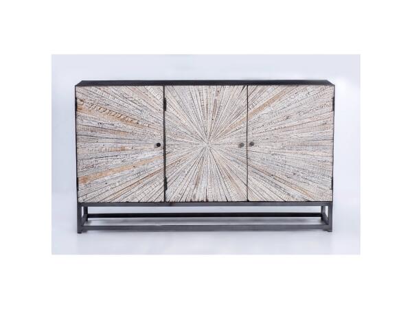 Eye-catching, the dramatic wood starburst pattern on the door fronts are masterfully cut and hand-placed to create an organic and