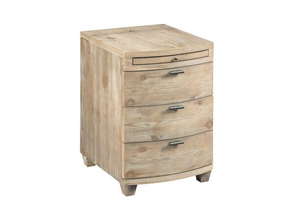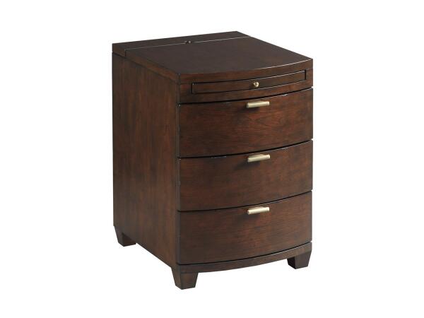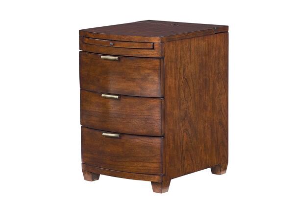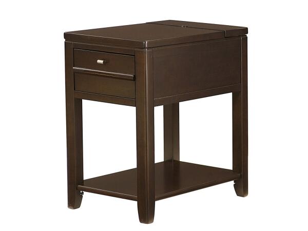 Bowfront chairside table is the perfect end table for any room. Drawer storage and USB charging station with a pullout