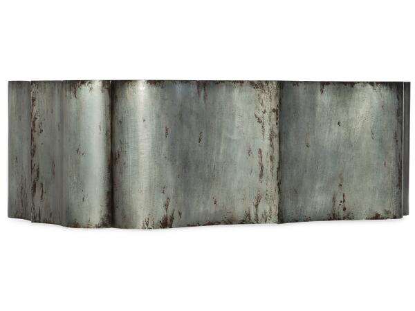 The stylized quatrefoil shape of the Beaumont Cocktail Table, combined with the unique galvanized metal Pecos finish, will be a