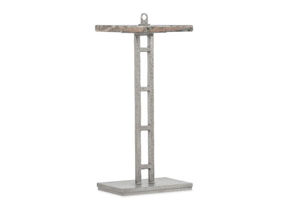 Organic meets industrial in the Chapman Drink Table combining a hand-hammered forged pewter base in a simple geometric design with