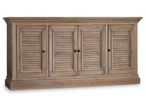 Enjoy clutter-free and stylish entertainment with this 72-inch console featuring charming louvered doors and a trend-forward dark natural casual finish.