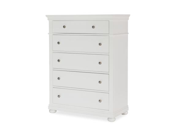 A striking silhouette with classic design details, the 5-drawer Leesburg Chest is as functional as it is exquisite, featuring drop-in felt panels in the top two drawers and a cedar-lined bottom drawer. Crafted of exquisite Mahogany Veneers, the bureau has a traditional finish with elegant cathedral and swirl mahogany veneers with light physical distressing for a casual appeal.