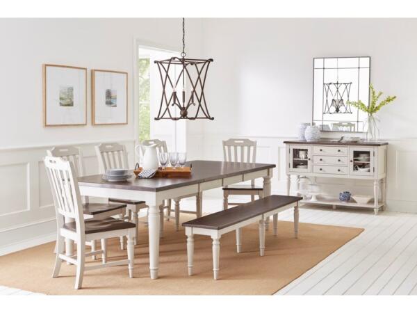 Warm and inviting with clean lines and a contemporary look perfectly describes this collection. The two toned table has a hand wire brushed finish and four solid legs. Complete your look with choices of ladderback, upholstered, or bench sitting. Available in both counter or dining height options.”